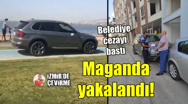 Ancak, büyük tepki çeken olay?n ard?ndan polis ekiplerince ve savc?l?kça herhangi bir i?lem yap?lmazken, belediye zab?ta ekipleri harekete geçti. ?zmir Büyük?ehir Belediyesi Zab?ta Trafik ?ube Müdürlü?ü ekiplerince, yurtta?lar?n hayat?n? tehlikeye atan magandaya 1176 TL ceza kesildi.