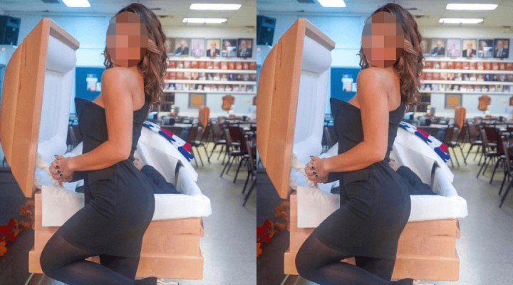 Vücuduna oturan straplez siyah elbise ve topuklu ayakkab? ile babas?n?n tabutu önünde özçekim yapan Influencer kad?n birçok tepki çekti. Payla?t??? foto?raf tatabutun kapa??n?n aç?k oldu?u görüldü. Bir baca??n? 'foot pop' pozuyla kald?r?rken, a?a?? bak?p ellerini kenetleyen kad?n, ya?am?n? yitiren babas?n?n kafas?n? gizleyerek foto?raf çekildi.