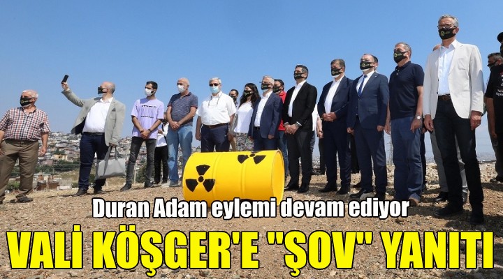 Duran Adam eyleminin ard?ndan aç?klama yapan Gaziemir Belediye Ba?kan? Halil Arda, ?zmir Valisi Yavuz Selim Kö?ger’in, eylemle ilgili yapt??? aç?klamaya de?indi. Eylem yapmas?n?n amac?n?n kamuoyu olu?turmak oldu?unun alt?n? çizen Ba?kan Arda, “Bu eylemi yapma amac?m?z buradaki tehlikeye dikkat çekmekti. 14-15 y?ld?r burada verilen bir mücadele var. Odalar, barolar, çevre örgütleri ve bilim insanlar?n?n mücadelesi y?llard?r sürüyor. Bu mücadeleyi yükseltmek için hep birlikte bu mücadeleyi ba?latt?k. Bu eylemin ses getirdi?ini biliyoruz. Eyleme ilginin artarak devam etti?ini görüyoruz. Amac?m?z kamuoyu yaratmak. Dün vali beyin bir aç?klamas? var. Vali bey diyor ki ‘Belediye ba?kan? ?ov yap?yor.’ ?ov kelimesi ?ngilizce’de göstermek anlam?na geliyor. Biz, buradaki tehlikeyi göstermeye çal???yoruz. Vali Bey anlam?? bizim yapmak iste?imizi. Kendisine te?ekkür ediyorum” dedi.