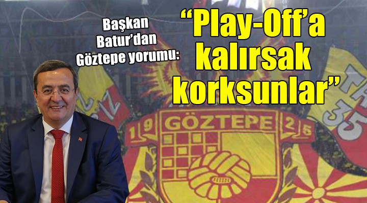 Play-Off hatt?nda bulunan 7. basamaktaki Bodrumspor'un 4 puan gerisinde yer alan sar?-k?rm?z?l? tak?ma olan inanc?n? dile getiren Ba?kan Batur, "Göztepe Play-Off'a ç?kacak. Son maçlarda s?k? bir grafik yakalad?. 4 puan kald? arada. En k?sa sürede kapataca??z onu ve Play-Off'a kalaca??z. Zaten Play-Off'a kald?k m? ondan sonra korksunlar bizden. Play-Off tak?m?y?zd?r biz. Orada ba?ar?l? oluruz. Son transferler tak?ma katk? aç?s?ndan önemliydi. ?u ara iyi gidiyoruz. Dilimizi ?s?ral?m, in?allah nazar de?mez" diye konu?tu.