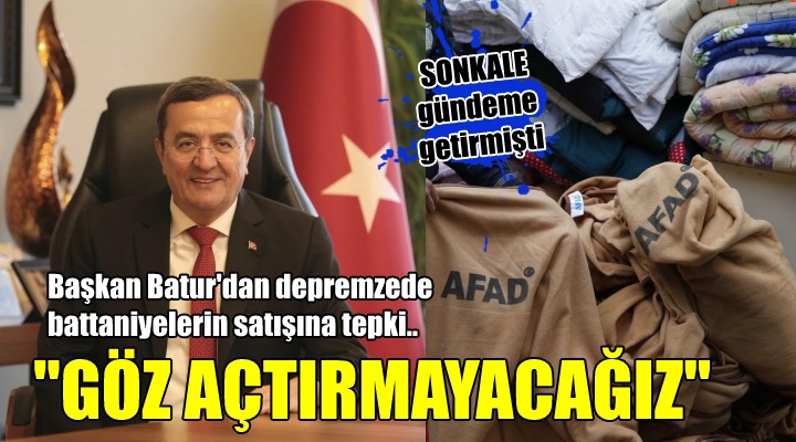 Konak Belediyesi Zab?ta Müdürlü?ü'ne ba?l? ekipler, gelen bir ihbar üzerine,1304 Sokak'taki park yeri olarak kullan?lan bo? alana bask?n yapt?. Sat??a ç?kar?ld??? görülen, üzerinde AFAD etiketi bulunan battaniyelere el konuldu. Battaniyeler Konak Belediyesi Zab?ta Müdürlü?ü deposuna götürüldü. Depremzedeler için da??t?lan battaniyelerin sat??a ç?kar?lmas?na Konak Belediye Ba?kan? Abdül Batur'dan sert tepki geldi.