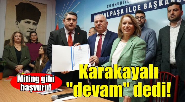 Karakayal?’y? adayl?k ba?vurusunda Kemalpa?al?lar yaln?z b?rakmad?. Yo?un kat?l?m?n ya?and??? adayl?k ba?vurusu öncesi Atatürk Meydan?’nda toplanan kalabal?k meydanda miting havas? olu?turdu. Ard?ndan CHP Kemalpa?a ?lçe Binas?’na kortej halinde ilerleyen Karakayal? destekçileri, parti binas?na s??mad? ve ya?mura ra?men sloganlarla binan?n önünde adayl?k aç?klamas?na destek verdi.