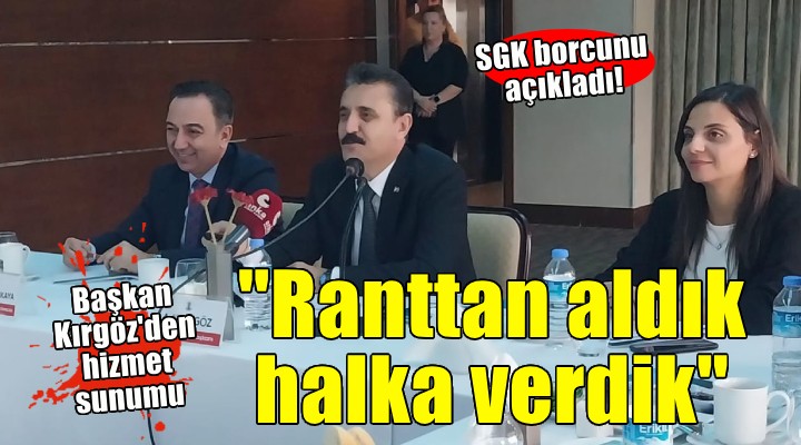 Dikili Belediyesi'nin SGK borçlar? ile ilgili bilgi veren K?rgöz, "SGK borçlar?m?z var. 230 milyon civar?nda. Bunun 70 milyonu yap?land?r?lm?? vaziyette. 120 milyonu için arsalar belirledik. Kabulü de oldu, protokolünü imzalayaca??z. Kalan? da yap?land?rma ç?karsa yap?land?raca??z. Çok zorlayan bir borcumuz yok" diye konu?tu.