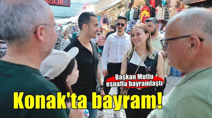 Cadde cadde, sokak sokak gezerek bölge esnaf?yla tek tek bayramla?an Konak Belediye Ba?kan? Nilüfer Ç?narl? Mutlu, “Kurban Bayram? dolay?s?yla ilçemizin kalk?nmas?nda önemli katk?s? olan esnaf?m?z ile bulu?tuk. Esnaf?m?za hem hay?rl? i?ler hem de mutlu bayramlar diledik. Bundan sonra da esnaf?m?z?n yan?nda olmaya devam edece?iz. Tüm esnaf?m?z?n ve kom?ular?m?z?n Kurban Bayram? kutlu olsun.”