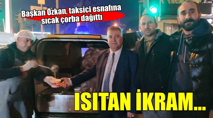 ?zmir ?oförler ve Otomobilciler Esnaf Odas? Ba?kan? Erkan Özkan, havalar?n iyice so?udu?u ?zmir'de gece mesailerini sürdüren taksici esnaf?na s?çak çorba sürprizi yapt?. Alsancak'ta bir taksi dura??na gelen Ba?kan Özkan, buraya getirilen araç ile taksici esnaf?na s?cak çorbalar? da??tt?.