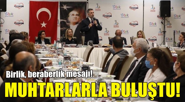 CHP Bayrakl? ?lçe Ba?kan? P?nar Susmu?, “Biliyoruz ki; yerel yönetimlerdeki ba?ar?n?n temel noktalar?ndan biri belediye ile i? birli?i içinde yürütülen muhtarl?k çal??malar?d?r. Çünkü siz, bulundu?unuz mahallenin, vatanda?lar?n sorunlar?n? bilen onlar?n dertlerini bize ileten kaynaklars?n?z, onlar?n gözü, kula??s?n?z. Muhtarl?k görevi büyük bir özveri gerektiriyor. Ve biliyoruz ki; siz hiçbir zaman bu özveriden çekinmeden görev yap?yorsunuz. Belediye Ba?kan?m?z?n ba?ar?s? sizin ba?ar?lar?n?zla bütünle?ti?inde daha güzel bir Bayrakl?’y? hep birlikte in?a edece?imize inan?yorum” dedi.