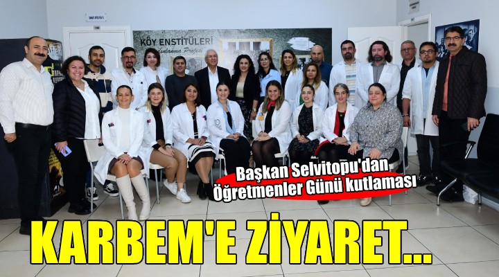 Karaba?lar Belediye Ba?kan? Muhittin Selvitopu, 24 Kas?m Ö?retmenler Günü nedeniyle Karaba?lar Belediyesi Sosyal Etkinlik Merkezi'ni (KARBEM) ziyaret ederek ö?retmenlerin gününü kutlad?.