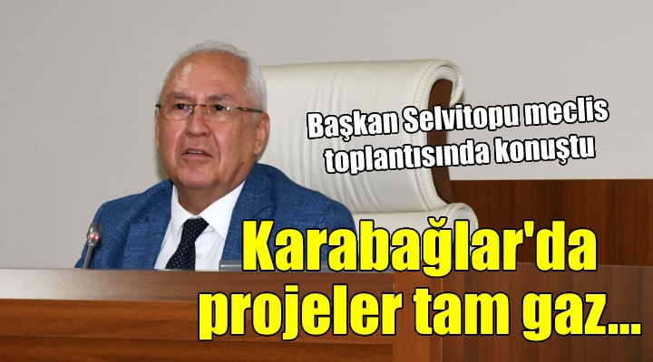 Toplant?n?n aç?l???nda belediye çal??malar?yla ilgili meclis üyelerini bilgilendiren Ba?kan Selvitopu, Karaba?lar Belediyesi projeleri ve çal??malar?n?n son h?zla sürdü?ünü söyledi. Ba?ta Fen ??leri, Park ve Bahçeler, Temizlik ??leri müdürlükleri çal??anlar? olmak üzere tüm ekiplerin sahada oldu?unu belirten Ba?kan Selvitopu, “Özellikle asfaltlamaya yo?un ?ekilde devam ediyoruz. Sadece temmuz ay?nda 1500 ton asfalt, tekni?ine uygun ?ekilde serildi. Asfaltlar?m?z hem bu y?l, hem de gelecek y?l sezonu içinde yo?un ?ekilde sürecek” dedi.