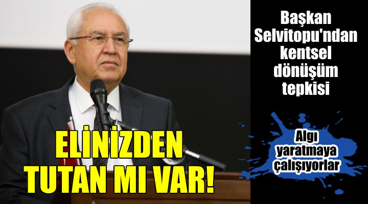 Yine ayn? çevrelerin 540 hektarl?k alandaki kentsel dönü?ümü Karaba?lar Belediyesi'nin engelledi?i yönündeki iddialar?n?n ak?l d??? oldu?unu belirten Ba?kan Selvitopu, “540 hektarl?k alandaki kentsel dönü?üm yetkisi, 2012 tarihinde ç?kar?lan 6306 say?l? yasayla tamamen Çevre ve ?ehircilik ve ?klim De?i?ikli?i Bakanl???'ndad?r. Bu bölgelerde ne Karaba?lar Belediyesi ne de ?zmir Büyük?ehir Belediyesi'nin yetki ve sorumlulu?u bulunmamakta. Buralardaki sa?l?ks?z yap?lar?n dönü?türülmesi için bakanl???n önünde hiçbir engel yok. 2012 y?l?ndan beri bölgeye tek bir çivi bile çakmayanlar, suçu yerel yönetimlere atman?n derdinde. Buyrun dönü?türün, elinizden tutan m? var!” dedi.