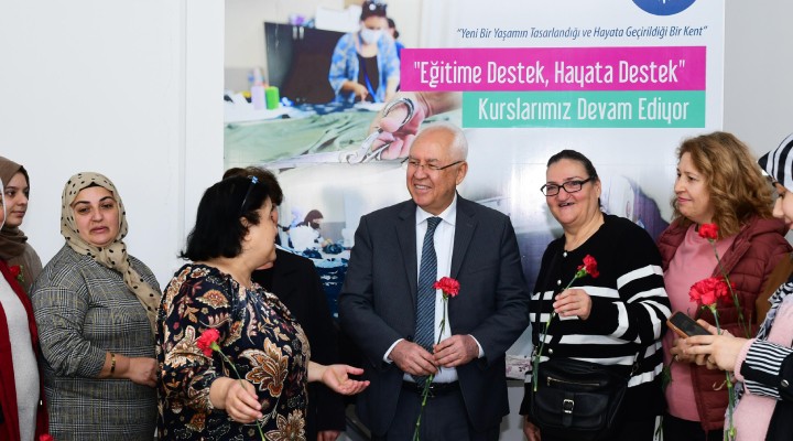 Kursiyerle sohbet eden ve herhangi bir ihtiyaçlar? olup olmad???n? soran Ba?kan Selvitopu, kad?nlar?n el i?çili?iyle yapt?klar? ürünleri dikkatle inceledi. Kad?nlar günlerini kutlayan Ba?kan Selvitopu'na te?ekkür ederek, örme sepet ve resim arma?an ettiler.