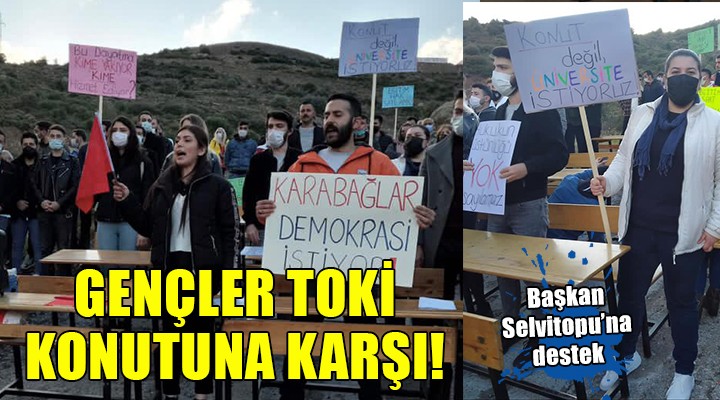 SONKALE?ZM?R-?zmir'in Karaba?lar ?lçesi'ne ba?l? Uzundere Mahallesi'ndeki ?zmir Demokrasi Üniversitesi'ne ait 80 hektarl?k arazinin 42 hektar?na TOK? taraf?ndan konut yap?lmak istenmesine CHP Karaba?lar Gençlik Kollar?'ndan tepki geldi. Üniversite alan?nda bas?n aç?klamas? yapan gençler, TOK? konutlar? karar?ndan vazgeçilmesini isterken, alan?n taman?n?n üniversiteye ayr?lmas?n? isteyan Karabalar Belediye Ba?kan? Muhittin Selvitopu'na destek verdi.