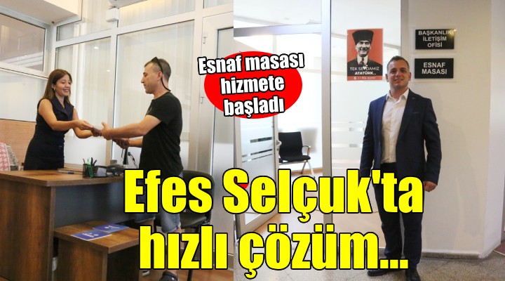 Efes Selçuk Esnaf ve Sanatkarlar Odas? Ba?kanl??? ile ortak yürütülen bir çal??man?n sonras?nda hayata geçen Esnaf Masas?, kent esnaf?n?n belediye ile ilgili tüm i? ve i?lemlerini tek bir noktada çözüme kavu?turacak.  Belediye ile ilgili her türlü soru, sorun ve taleplerini bu masaya ileten kent esnaf?na h?zl? çözümler sunulacak.