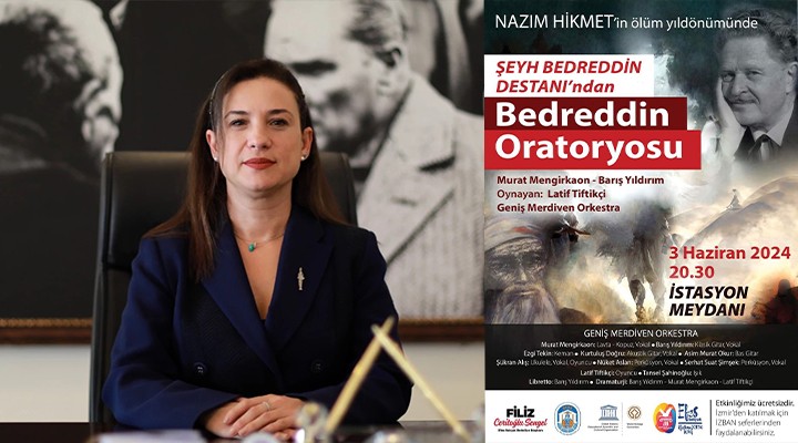 Ünlü ?airin an?s?na düzenlenen etkinlik, 3 Haziran Pazartesi günü saat 20.30’da ?stasyon Meydan?’nda gerçekle?ecek. Geni? Merdiven Orkestras? taraf?ndan sahnelenecek olan Naz?m Hikmet’in ölümsüz eseri “?eyh Bedreddin Destan?”ndan uyarlanm?? “Bedreddin Oratoryosu”, O’nun eserinde i?ledi?i temalar? ve tarihi anlat?mlar? müzikle bulu?turacak.