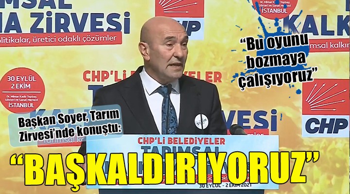Tar?msal stratejik planlama yap?lmad???n? ve çiftçinin kaderine terk edildi?ini aktaran Soyer, Türkiye tar?m?n?, ne üretece?ini bilmeden kepenk kapatan bir fabrikaya benzetti. Soyer, “Çaresiz, çiftçimiz köyünü terk edip ?ehre göçüyor. Do?du?u topraklar? ise büyük tar?m ?irketleri ve maden tekelleri i?gal ediyor. Köylü do?du?u yerde aç kal?yor. Onlar?n yerine gözü doymaz birkaç holding yerle?iyor. Hepsi birle?iyor, kültürümüzü de do?am?z? da y?k?p geçiyor. ?zmir’de biz buna ba?kald?r?yoruz. Bu oyunu bozmaya çal???yoruz” dedi.