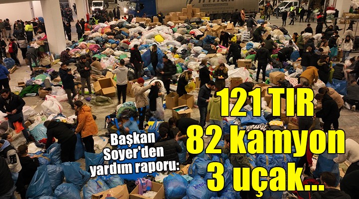 SONKALE?ZM?R-?zmir Büyük?ehir Belediye Ba?kan? Tunç Soyer, Türkiye'ye yasa bo?an deprem felaketinin 5. gününde ?zmir'den yap?lan yard?mlar? sosyal medya hesab?ndan aç?klad?. 4. gün sonundaki yard?m rakamlar?n? aç?klayan Soyer ?unlar? kaydetti: