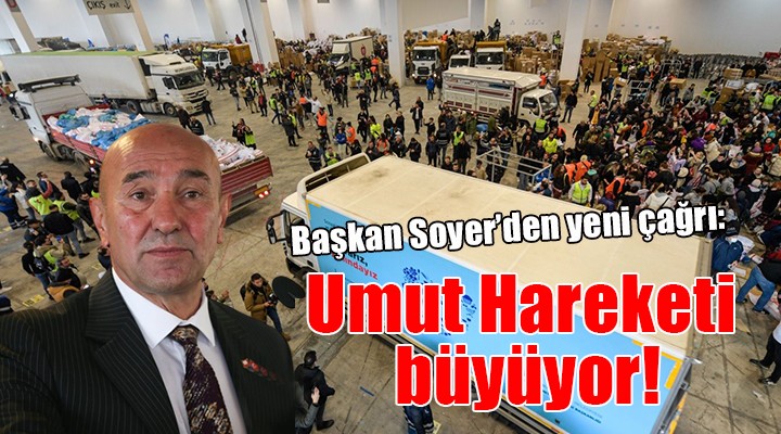 SONKALE?ZM?R-?zmir Büyük?ehir Belediye Ba?kan? Tunç Soyer, deprem bölgesine ?zmir'den gönderilen yard?mlarla ilgili sosyal medya hesab?ndan aç?klama yapt?. Umut Hareketi kampanyas?n? büyüttüklerini vurgulayan Soyer, destek ça?r?s?n? yineledi.