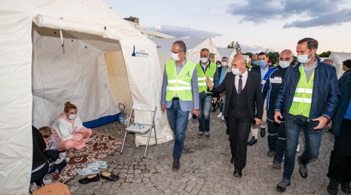 Daha sonra Afet ve Acil Durum Yönetimi Ba?kanl??? (AFAD) ve ?zmir Büyük?ehir Belediyesi taraf?ndan kurulan çad?r kentteki depremzedeleri ziyaret eden Tunç Soyer, yurtta?lar?n sorunlar?n? dinledi. Depremzedeler Tunç Soyer ve ekibine yapt?klar? çal??malardan dolay? te?ekkür etti. ?zmir Büyük?ehir Belediye Ba?kan? Tunç Soyer, belediye taraf?ndan çe?itli hizmetlerin verildi?i noktalar? da denetledi.