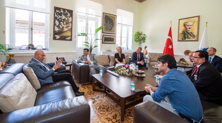 ?zmir Büyük?ehir Belediye Ba?kan? Tunç Soyer, Türkiye Harp Malulü Gaziler, ?ehit Dul ve Yetimleri Derne?i ?zmir ?ubesi Ba?kan? Recep Do?ru ile derne?in yönetim kurulu üyelerini a??rlad?.
