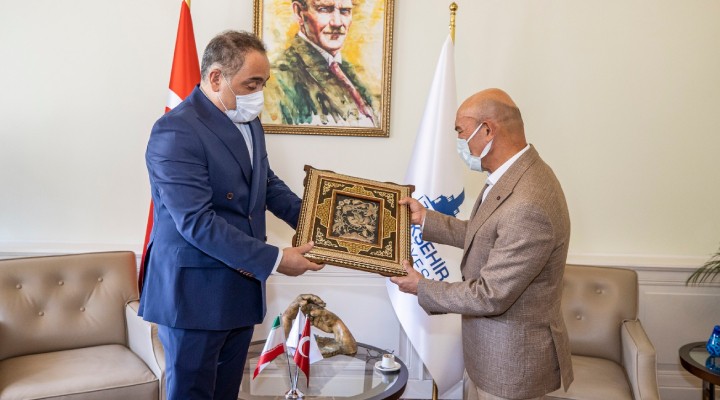 ?zmir Büyük?ehir Belediye Ba?kan? Tunç Soyer de ziyaretten dolay? çok memnun olduklar?n? belirtti. ?zmir'de de ?ran'a yönelik bir sergi açma fikrine s?cak bakt?klar?n? söyleyen Ba?kan Tunç Soyer, “?ran günü veya gecesi nas?l isterseniz. ?zmirlileri tan?s?nlar. Kültürleri ve lezzetleriyle tan??t?rmak isteriz. Uzun yolculuklar küçük ad?mlarla ba?lar. ?lk ad?m? atal?m, sonras?nda da mutlaka birlikte yapabilece?imiz çok ?ey oldu?unu görece?iz” diye konu?tu.
