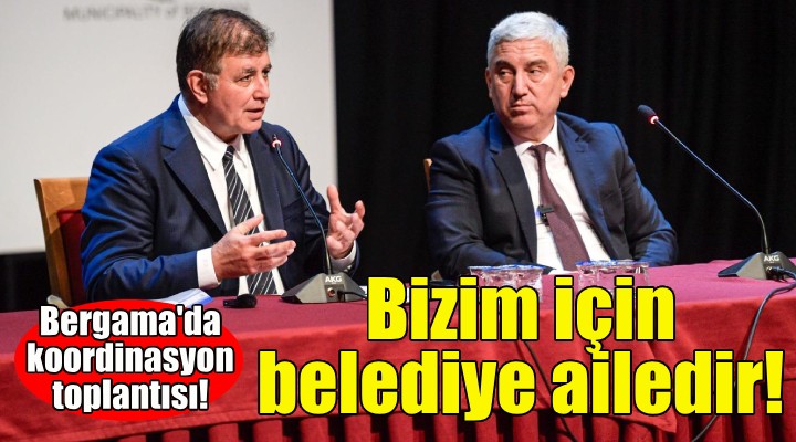 ?zmir Büyük?ehir Belediye Ba?kan? Dr. Cemil Tugay, ilçelerdeki koordinasyon toplant?lar?na Bergama'da devam etti. Bergama Belediye Ba?kan? Prof. Dr. Tanju Çelik'in ev sahipli?inde düzenlenen toplant?ya ?zmir Büyük?ehir Belediyesi ve Bergama Belediyesi bürokratlar? kat?ld?. ?lçenin sorunlar?, ihtiyaçlar? ve projeleri görü?üldü. Ba?kan Tugay, Bergama'da ayr?ca CHP Bergama ?lçe Ba?kanl???'n? ziyaret etti, ard?ndan muhtarlarla bir araya geldi.