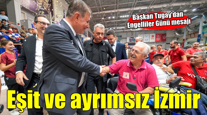 ?zmir Büyük?ehir Belediyesi’nin ilkelerini “eri?ilebilir, kapsay?c?, hak temelli” ?eklinde s?ralayan Ba?kan Tugay, “Toplu ula??m araçlar?nda kendi ba??n?za yolculuk edebildi?iniz, kamu binalar?na, özel i?letme mekânlar?na, parklara, yollara, kald?r?mlara, dijital dünyaya eri?ebildi?iniz, e?itim alabildi?iniz, meslek sahibi olup i? bulabildi?iniz, diledi?iniz kitab? okuyabildi?iniz, diledi?iniz sergiyi gezebildi?iniz, psikolojik deste?e ihtiyaç duydu?unuzda yan?n?zda belediyenizi bulabildi?iniz bir hayat? kurmak için çal???yoruz. Nas?l ki engelli bireyler, toplumsal zorluklara ra?men ya?am boyu ayakta kal?yorsa bu ?ehrin belediyesi olarak biz de ya?am boyu onlarla yan yanay?z” sözlerine yer verdi.