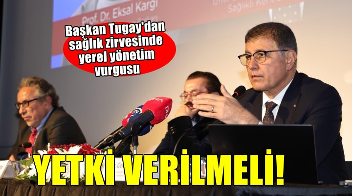 ?zmir Büyük?ehir Belediyesi olarak kentte yürütülen sa?l?k hizmetlerinden örnekler veren ve Türkiye’nin ilk ve en köklü belediye hastanesi E?refpa?a Hastanesi’nin çal??malar?n? aktaran Ba?kan Tugay, “Polikliniklerimizle ve evde bak?m hizmetlerimizle sa?l?k alan?nda E?refpa?a Hastanesi’nin Türkiye için bir ilham kayna?? olaca??n? dü?ünüyoruz. Yak?nda diyabet merkezleri de açmay? planl?yoruz” ifadelerini kulland?.