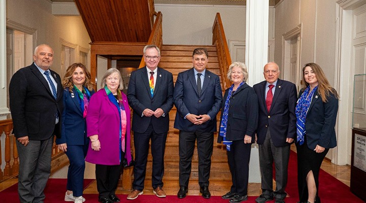 2023-2024 Dönemi Uluslararas? Rotary Ba?kan? Gordon R. Mclnally ve e?i Heather McInally, Uluslararas? 2440. Bölge Federasyon Ba?kan? Ayda Özeren, 2440. Rotary Federasyonu Eski Ba?kan? Esat Kard?çal? ve e?i ?clal Kard?çal? Ba?kan Tugay'a hay?rl? olsun ziyaretinde bulundu. ?zmir Büyük?ehir Belediyesi Genel Sekreter Yard?mc?s? Ertu?rul Tugay ile ?zmir Büyük?ehir Belediyesi Sosyal Projeler Dairesi Ba?kan? An?l Kaçar’?n da e?lik etti?i ziyarette ?zmir Büyük?ehir Belediyesi ve Rotary Kulüpleri i? birli?i ile yap?lan Alt?n ??ne Projesi ve Giri?imci Kad?nlar Projesi'nin (G?KA) devam etmesine yönelik konular görü?üldü.