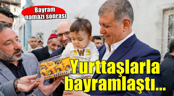 Ramazan Bayram?'n?n birinci gününde Eski Çaml?k Süleymaniye Camii'nde bayram namaz?n? k?lan ?zmir Büyük?ehir Belediye Ba?kan? Dr. Cemil Tugay, Karaba?lar'da yurtta?larla bayramla?t?. Ba?kan Tugay, “Tüm insanl??a sa?l?k, mutluluk ve bereket getirmesi dile?iyle Ramazan Bayram?'n?z? kutluyorum. Nice bayramlarda bulu?mak dile?iyle” diye konu?tu. Namaz sonras? mahallelilerin taleplerini dinleyen Ba?kan Tugay, cocuklara bayram harçl??? ve hediye oyuncak verdi. Bayram nedeniyle mobil araçlarla yurtta?lara simit ve çay ikram?nda bulunuldu. Bayramla?maya ?zmir Büyük?ehir Belediye Ba?kan Vekili Dr. Zafer Levent Y?ld?r da kat?ld?.