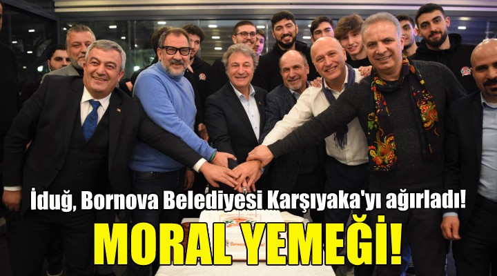 Bornova Belediye Ba?kan? Dr. Mustafa ?du?, Kar??yaka Spor Kulübü Ba?kan? Turgay Büyükkarc?, Bornova Belediyespor Kulübü Ba?kan? Hasan Yerakar, Bornova Belediyesi Kar??yaka basketbol ?ubesi sorumlusu Hakan ?nan, kulüp yöneticileri, basketbolcular ve teknik kadronun kat?ld??? yemek Bornova Belediyesi Dramal?lar Kö?kü Kent Ar?ivi ve Müzesi’nde düzenlendi. Türkiye Basketbol Ligi’nde zirveyi zorlayan sezonun fla? tak?m? Bornova Belediyesi Kar??yaka’ya destek mesajlar?n?n verildi?i yemekte genç oyunculardan kurulu tak?m moral depolad?.