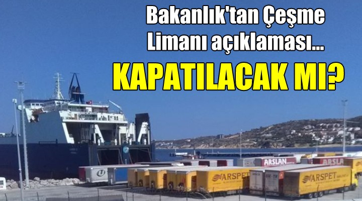 SONKALE?ZM?R-Personelinde koronavirüs tespit edildikten sonra karantinaya al?nan ancak daha sonra faaliyetlerine devam etti?i anla??lan Çe?me Ulusoy Liman? ile ilgili tart??malara Ticaret Bakanl???'ndan aç?klama geldi. Kapat?lmas? için imza kampanyas? düzenlenen Çe?me Liman?, salg?n?n merkezi konumundaki ?talya'dan gelen gemiler nedeniyle büyük tepki çekmi?ti.
