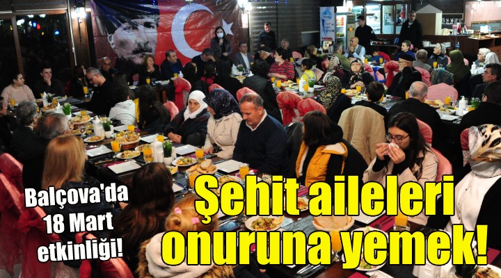 Balçova Belediye Ba?kan? Fatma Çalkaya’n?n 18 Mart Çanakkale Deniz Zaferi ve ?ehitleri Anma günü nedeniyle düzenledi?i yeme?e Balçova’da oturan ?ehit yak?nlar? ve belediye meclis üyeleri kat?ld?.