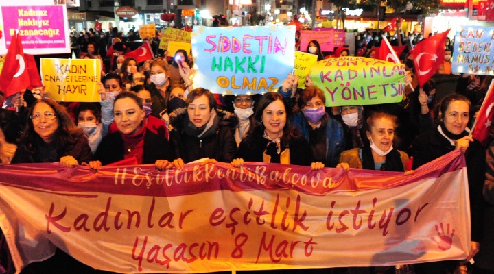 Balçova Belediyesi’nin düzenledi?i 8 Mart Dünya Kad?nlar Günü etkinli?inde Balçoval? Kad?nlar sokaklarda gövde gösterisi yapt?. Caddeleri dolduran binlerce kad?n bir yandan Toplumsal Cinsiyet E?itli?ini savunan sloganlar atarak pankartlar ta??d?, di?er yandan da geceler de bizim gündüzlerde bizim diyerek halaylar çekti.