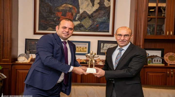 ?zmir Bal?kesirliler E?itim Kültür ve Sosyal Dayan??ma Derne?i Ba?kan? Erkan Uzun ve derne?in yönetim kurulu üyeleri, ?zmir Büyük?ehir Belediye Ba?kan? Tunç Soyer'i ziyaret etti. Dernek yönetimi, I. Dünya Sava??'nda Çanakkale Cephesi'nde çarp??an ve Seyit Onba?? ad?yla da bilinen Bal?kesirli Seyit Ali Çabuk'un ad?n?n ?zmir'de bir parka verilmesini istedi. Ziyarette, Soyer'e Seyit Onba??'n?n heykeli ile Bal?kesir'de kad?nlar?n yapt??? el dokumas? Ya?c?bedir hal?s? hediye edildi.