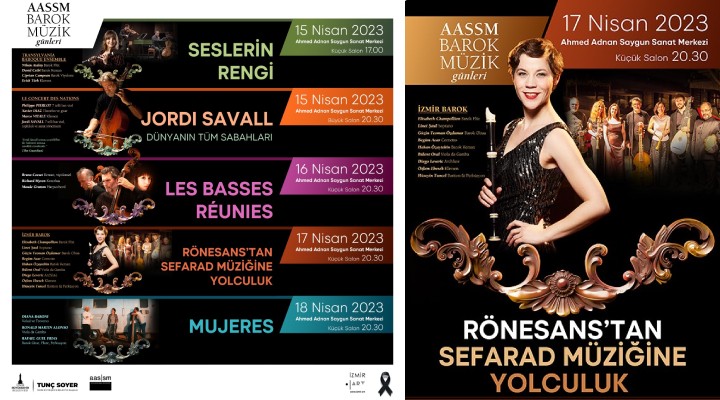 16 Nisan Pazar günü 20.30’da AASSM, “Les Basses Reunies” konserine ev sahipli?i yaparken, 17 Nisan Pazartesi günü 20.30’da ?zmir Barok “Rönesans'tan Sefarad Müzi?ine Yolculuk” konseri ile program sürecek. AASSM Barok Müzik Günleri, 18 Nisan'da 20.30’da yap?lacak Mujeres “Kad?nlar” konseri ile son bulacak.