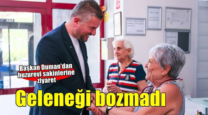 Buca Belediye Ba?kan? Görkem Duman, Kurban Bayram?'nda ilk ziyaretini huzurevine gerçekle?tirdi. Buca'da bulunan ?zmir Büyük?ehir Belediyesi Sosyal Ya?am Kampüsü Zübeyde Han?m Huzurevi Ya?l? Bak?m ve Rehabilitasyon Merkezi’ni ziyaret eden Ba?kan Görkem Duman, ellerinden öptü?ü huzurevi sakinleriyle bol bol sohbet etti.
