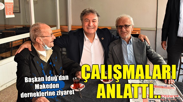Ba?kan Mustafa ?du?’un ilk dura?? Makedonya Debre Kültür ve Yard?mla?ma Derne?i Ba?kan? Beytullah Kazafero?lu oldu. Kazafero?lu, derne?e yapt?klar? için Ba?kan ?du?’a te?ekkür plaketi verirken, Ba?kan ?du? da derne?in an? defterine yaz? yazarak imzalad?. ?kinci olarak ?zmir Makedonya Saroval?lar Derne?i Ba?kan? Murat Kaçar ziyaret edildi. Dernek üyelerinin de kat?l?m gösterdi?i ziyarette Ba?kan ?du?, orkestra e?li?inde Balkan ?ark?lar? ile kar??land?.