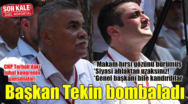 Tuhaf kongrenin üzerinden 10 gün geçmesine ra?men, ilçede tart??malar?n devam etmesi ve farkl? boyutlara evrilmesi üzerine Torbal? Belediye Ba?kan? Mithat Tekin, dün ak?am sosyal medya hesab?ndan bir aç?klama yapm??t?. ?sim vermeden Övünç Demir ve Sefer ?pekli'ye tepki göstermi?ti.