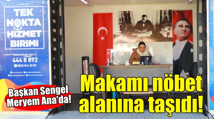 Belediyenin alandan tahliye edilmek istenmesine kar?? tek ba??na nöbetine devam eden Ba?kan Cerito?lu Sengel tek nokta hizmet arac?n? makam?na çevirdi. Burada Meryem Ana Evi nöbetine destek olmak için gelen vatanda?lar? alana ta??d??? makam?nda dinledi.