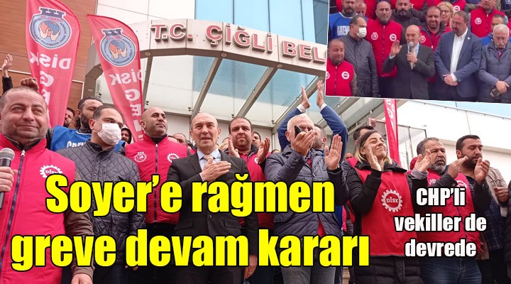 Ancak, belediye ve sendika aras?ndaki görü?meler henüz olumlu sonuçlanmad?. Krizin t?rmanmas? üzerine Ba?kanlar Soyer ve Gümrükçü'nün yan? s?ra CHP ?zmir Milletvekilleri Kamil Okyay S?nd?r, Bedri Serter ve Ednan Arslan'?n da sendika temsilcileri ile bir araya geldi?i ifade edildi.