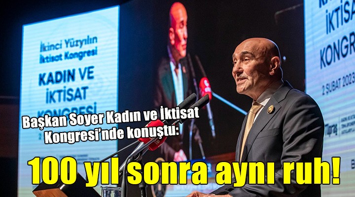 ?zmir Büyük?ehir Belediyesi taraf?ndan düzenlenen Kad?n ve ?ktisat Kongresi’nde konu?an Ba?kan Tunç Soyer, “Gelece?in in?as?na yine birlikte, omuz omuza ve olmas? gerekti?i gibi e?it olarak ba?l?yoruz. Yüz y?l önce Türkiye Cumhuriyeti’nin temelleri, özünde kad?n duru?u olan bu bulu?mayla mayaland?. Güçlendi. Bizler de, tam yüz y?l sonra, yine ?zmir’de ayn? ruh ve kararl?l?kla topland?k” dedi.