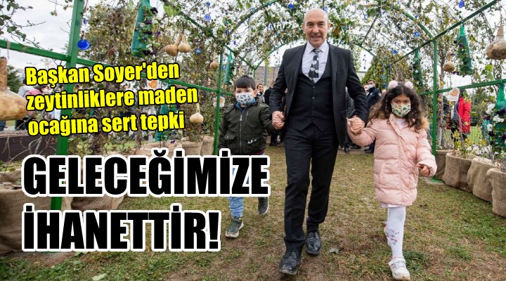 Sosyal medya hesab?ndan bir aç?klama yapan Ba?kan Soyer, "Bakanl???n bugün yay?nlad??? vicdanlar? yaralayan yönetmelik ile zeytinliklerimiz madencili?e aç?ld?. Zeytin a?açlar?na maden oca?? hançeri saplamak, gelece?imize ihanettir. ?zmir Büyük?ehir Belediyesi olarak yürütmeyi durdurma davas? açaca??m?z? kamuoyunun bilgisine sunar?m" ifadelerine yer verdi.