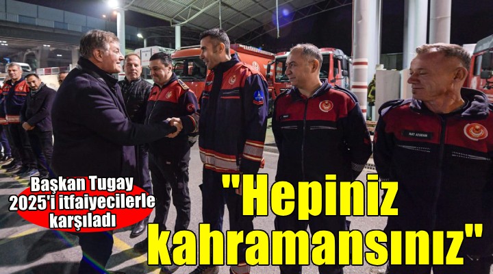 ?zmir Büyük?ehir Belediye Ba?kan? Dr. Cemil Tugay, 2025 y?l?n? görev ba??ndaki itfaiye personeliyle kar??lad?. ?zmir ?tfaiyesi’nin merkez istasyonuna gelen Ba?kan Dr. Cemil Tugay’a ?zmir Büyük?ehir Belediyesi Genel Sekreter Yard?mc?s? ?smail Mutaf, ?zmir ?tfaiye Dairesi Ba?kan? Ya?ar Korkmaz ve birim yöneticileri e?lik etti. Ba?kan Tugay, istasyonda görevli personelin yan? s?ra ?zmir’in dört bir yan?nda görevde olan itfaiye erlerinin de yeni y?l?n? telsizden yapt??? anonsla tebrik etti.