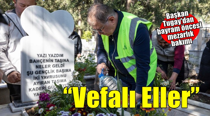 ?zmir Büyük?ehir Belediyesi, yakla?an Ramazan Bayram? öncesi kabirlerin temizli?iyle ilgili fark?ndal?k olu?turmak için Kar??yaka Örnekköy Mezarl???’nda “Vefal? Eller” temizlik ve bak?m etkinli?i düzenledi. ?zmir Büyük?ehir Belediye Ba?kan? Dr. Cemil Tugay’?n uzun y?llar çal??ma arkada?? olan ve geçen y?l hayat?n? kaybeden Haydar ?nan?r an?s?na ba?lat?lan sosyal sorumluk projesi, Haydar ?nan?r’?n kabrinin yer ald??? Örnekköy Mezarl???’nda gerçekle?tirildi. Etkinli?e Ba?kan Dr. Cemil Tugay, ?zmir Büyük?ehir Belediyesi Mezarl?klar Dairesi Ba?kan? Ali Kemal Elita?, Haydar ?nan?r’?n e?i Ya?mur ?nan?r ve çok say?da ?zmirli kat?ld?.