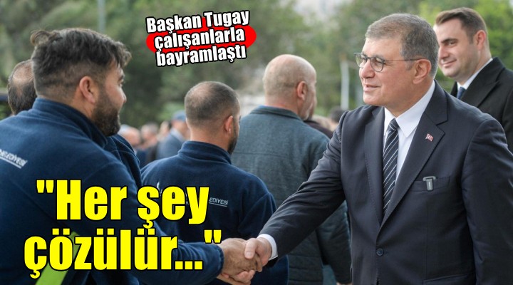 Bayramla?mada konu?an Ba?kan Tugay, “?zmir Büyük?ehir Belediyesi, tüm yap?s?yla kocaman bir ailedir. Personelimizi ailemden biri gibi görüyorum. Selam?mda da, sar?lmam?zda da farkl? bir duygu hissediyorum. Bu sadece bir ba?kan?n hissedece?i duygu de?il, belediyedeki tüm çal??anlar?n birbirlerine kar?? hissedece?i duygu olmal?d?r. Bu güzel ailenin bir parças? olarak birbirinin iyili?ini isteyen, iyili?i için mücadele eden insanlar olmam?z laz?m. Bu birlik duygusundan çok önemli ba?ar?lar, zaferler ç?kaca??n? dü?ünüyorum” dedi.