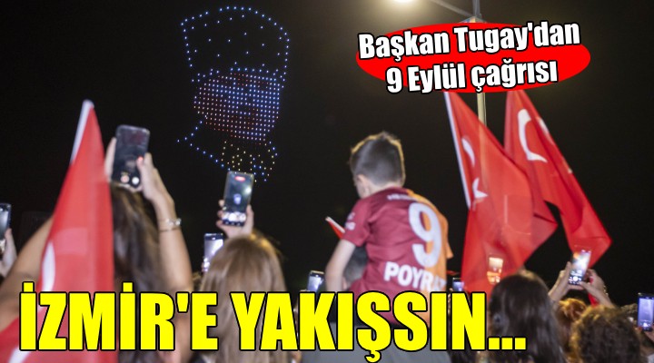 - Tugay, “102. y?l?nda ?zmir’in kurtulu?, cumhuriyetin kurulu? bayram? 9 Eylül kutlu olsun! Zafer Yürüyü?ü ile ba?layacak 9 Eylül kutlamalar? gün boyu devam edecek. Tüm ?zmirlileri bayraklar?yla bu co?kuyu birlikte ya?amaya davet ediyoruz. 9 Eylül’ü ?zmir’e yak??an bir görkemle kutlayal?m” dedi.