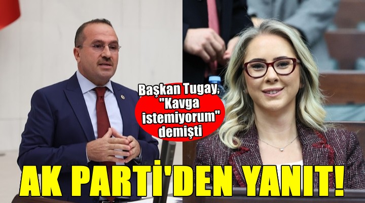 ?zmir Büyük?ehir Belediye Ba?kan? Cemil Tugay'?n “Özellikle AK Partili siyasetçiler ba?ta olmak üzere hükümet mensuplar?n?n, ?zmir’i kendi memleketleri olarak görmesini isterim. ?hracatta, tar?mda, saniyede çok önemli yeri olan bir ?ehre hizmet etmelerini ve bize yard?mc? olmalar?n? isterim. Kavga istemiyorum, tart??ma istemiyorum sadece hizmet etmek istiyorum" sözlerine AK Parti cephesinde tepkiyle kar??land?.