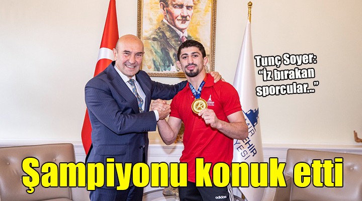 SONKALE?ZM?R-?spanya’da yap?lan U23 Dünya Güre? ?ampiyonas?’nda Azeri rakibini yenerek 60 kiloda dünya ?ampiyonu olan ?zmir Büyük?ehir Belediyesi Gençlik ve Spor Kulübü güre?çisi Kerem Kamal, Ba?kan Tunç Soyer'i ziyaret etti. Ziyaretten duydu?u memnuniyeti dile getiren Ba?kan Soyer sosyal medya hesab?ndan ?u aç?klamay? yapt?: