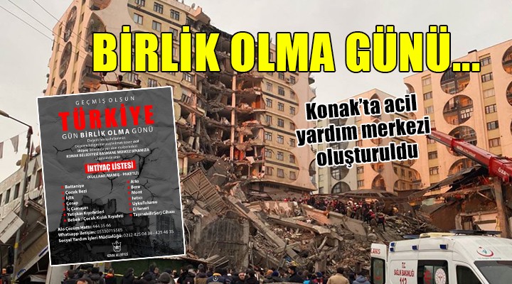 Kahramanmara?’ta meydana gelen ve Hatay, Gaziantep, Osmaniye, Malatya, Ad?yaman, Adana, Kilis, Diyarbak?r, ?anl?urfa’da da büyük y?k?ma sebep olan 7,4 büyüklü?ündeki deprem felaketinin ard?ndan Konak Belediye Ba?kan? Abdül Batur, deprem bölgesine yard?m için talimat verdi. Konak Belediyesi öncülü?ünde haz?rlanan yard?m t?r? yola ç?kmadan önce deprem bölgesine ula?t?r?lmak üzere acil ihtiyaç listesinde yer alan malzemeleri ula?t?rmak isteyen vatanda?lar için de destek hatt? kuruldu. Öncelikli ihtiyaç listesi ise battaniye, çocuk bezi, içlik, çorap, iç çama??r?, yeti?kin k?yafetleri, bebek/çocuk k??l?k k?yafeti, ?s?t?c?, uyku tulumu, el feneri, ta??nabilir ?arj cihaz? olarak belirtildi. Deprem bölgesine yard?m ula?t?rmak isteyen vatanda?lar, acil ihtiyaç listesinde yer alan malzemeleri Konak Belediyesi’nin Basmane’de bulunan merkez binas?na ula?t?rabiliyor. Detayl? bilgi için Konak Belediyesi’nin 444 35 66 numaral? çözüm hatt?, (0533) 071 55 65 Whatsapp ileti?im numaras?, belediyenin Sosyal Yard?m ??leri Müdürlü?ü’nün (0232) 425 04 34 ile (0232) 425 46 35 telefon numaralar? hizmet veriyor.
