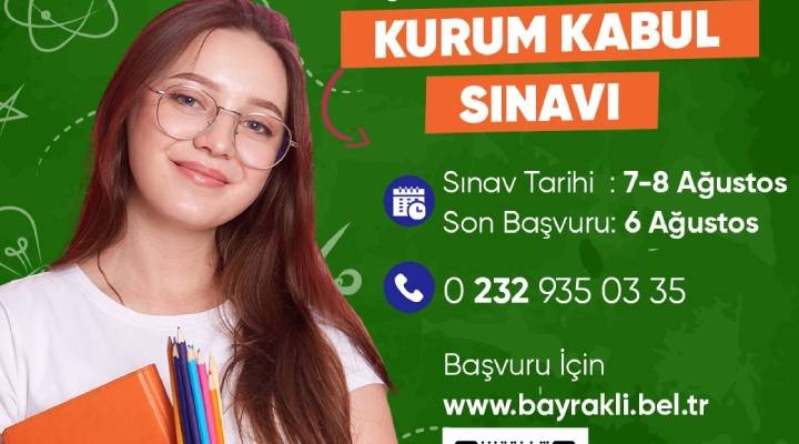Bayrakl? Belediyesi Sosyal Etkinlik Merkezi, 19 s?n?f bir laboratuvar ve bin ö?renci kapasitesiyle yeni dönem için e?itim görecek ö?rencilerini belirleyecek. Bu kapsamda 2025-2026 e?itim-ö?retim y?l? için 8’inci ve 12’nci s?n?f ö?rencileri merkezde s?navlara ücretsiz haz?rl?k kursundan faydalanabilecek. S?navla belirlenecek ö?renciler için ba?vurular 6 A?ustos Çar?amba gününe kadar yap?labilecek. S?nav 7-8 A?ustos tarihlerinde gerçekle?tirilecek. Ö?renciler, s?nav ve ba?vuru süreci hakk?nda detayl? bilgiye 0232 935 03 35 numaral? telefon numaras?ndan ula?abilecek. Ö?renciler ba?vurular? Bayrakl? Belediyesinin internet sitesinden de yap?labilecek.