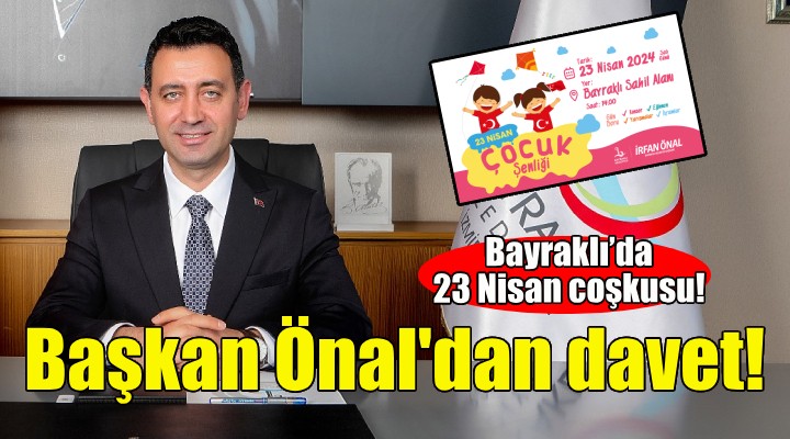 Bayrakl? Belediye Ba?kan? ?rfan Önal, “Ulu Önder Mustafa Kemal Atatürk’ün çocuklara arma?an etti?i 23 Nisan’da gelece?imizin teminat? çocuklar?m?zla bulu?aca??z. Onlar?n bir tebessümü, mutlulu?u her ?eye de?er. Bu anlay??la çocuklar?n gününde onlar için özel bir organizasyon haz?rlad?k. Gösteriler, ?ovlar, konserler, yar??malar ve ikramlarla dolu dolu bir bayram geçirece?iz. Mazbatam?z? ald?ktan sonraki ilk ulusal bayram?m?z? sevgili çocuklar?m?zla birlikte co?kuyla kutlayaca??z. Her y?l etkinliklerimizi büyütece?iz. En güzel bayramlar Bayrakl?’da ya?anacak. Etkinliklerimize tüm çocuklar?m?z? bekliyoruz” dedi.